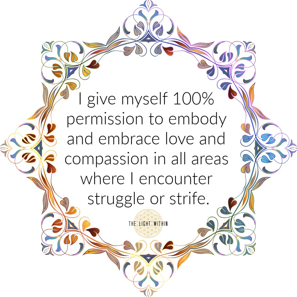 “I give myself 100% permission to embody and embrace love and compassion in all areas where I encounter struggle or strife.”