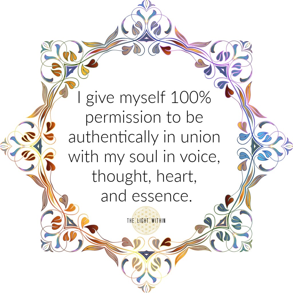 “I give myself 100% permission to be authentically in union with my soul in voice, thought, heart, and essence.”